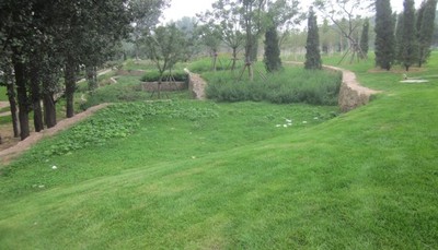邊坡植草綠化,根據地形設計坡度,保證邊坡穩定性的同時考慮景觀效果。邊坡植草,不僅美化環境,植物根系生長利于邊坡穩定,固結土壤,減少水土流失。